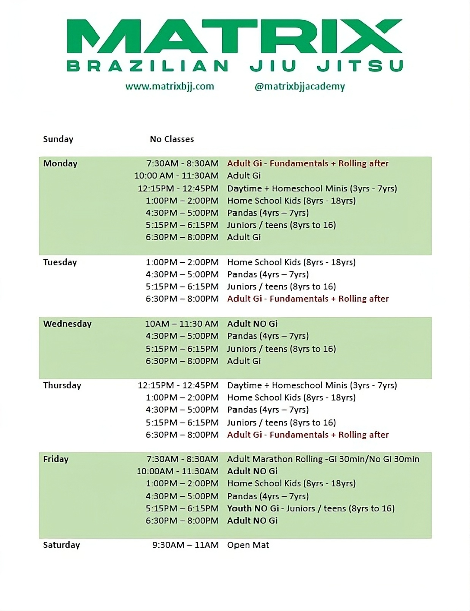 Thank you for your interest in visiting our Matrix BJJ Academy!