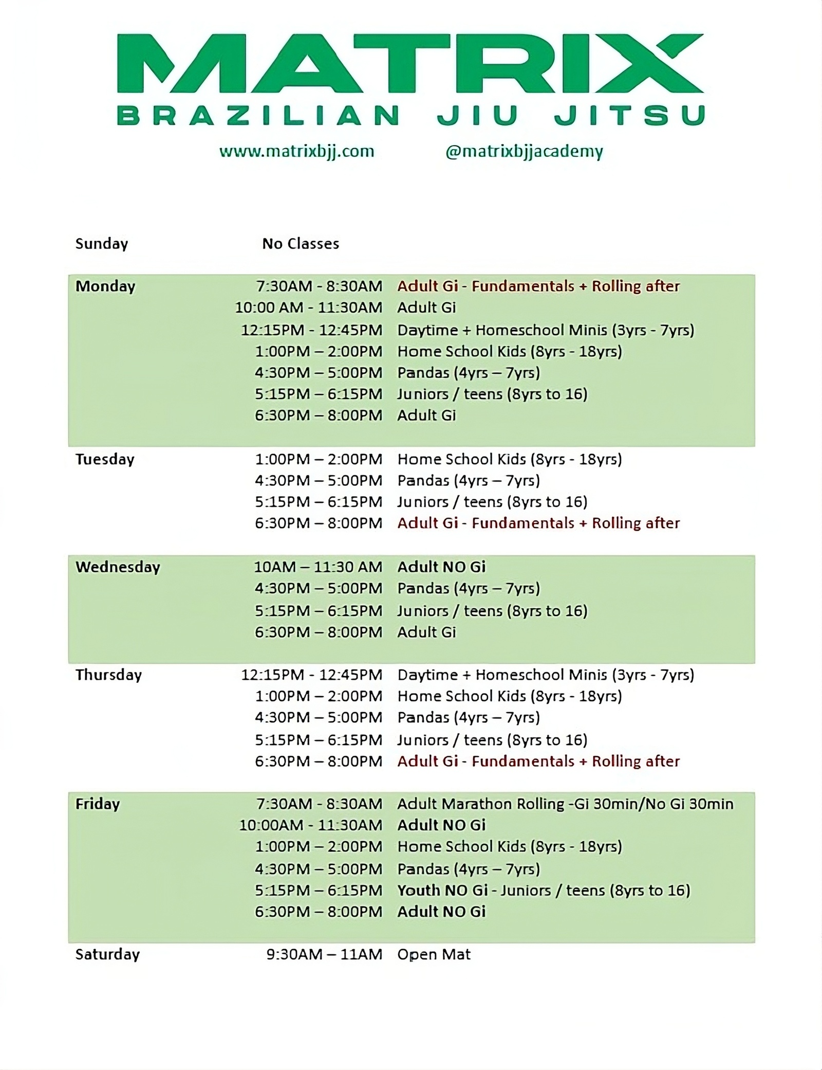 Matrix mid-day Minis (3-7) Gi - Class
